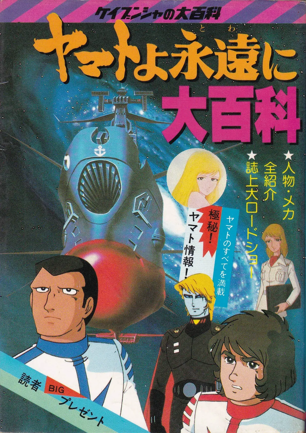 | 目次 | 「ヤマトよ永遠に」名場面集 ヤマトファンのみなさんへ 誌上大ロードショー ヤマトはここがかわった! キャラクター紹介 地球・ヤマト編 暗黒星団帝国編 オール・メカ紹介 美術設定集 スタッフ紹介 ヤマト秘話 「ヤマトよ永遠に」主題歌集 読者大プレゼント |