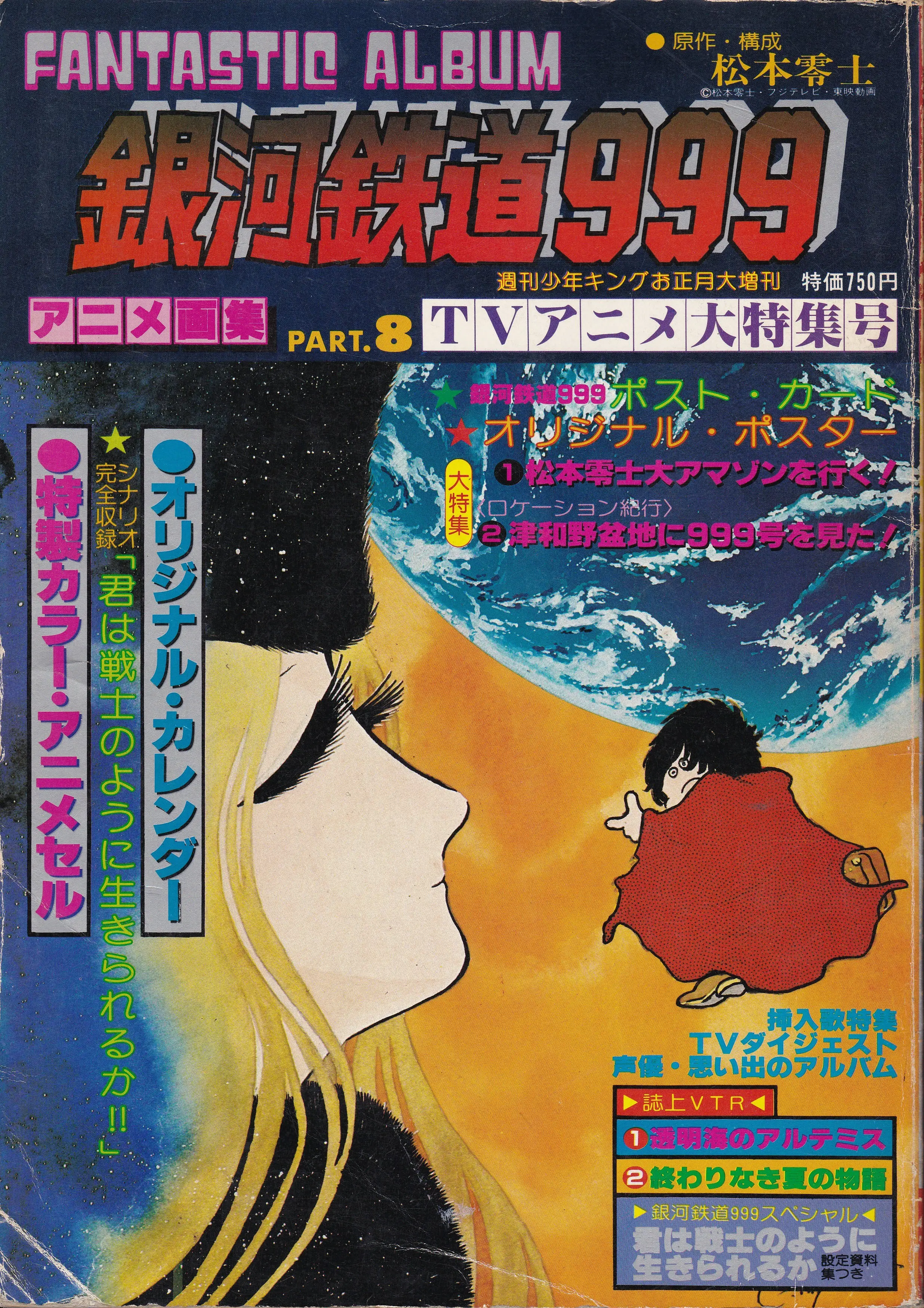 | 収録 | オリジナル・ポストカード オリジナル・ポスター オリジナル・カレンダー カラー・アニメセル 銀河鉄道999スペシャル 君は戦士のように生きられるか!! シナリオ完全収録 銀河鉄道999ダイジェスト ストーリー紹介 作品リスト 放映局一覧 スタッフ一覧 挿入歌特集 誌上VTR①透明海のアルテミス(後編) 予告ナレーション特集 ゲスト声優紹介 トピックス 誌上VTR②終わりなき夏の物語(前編) 特集 思い出のアルバム 愛読者プレゼント クローズ・アップ 高木均 ロケハン紀行 山口路に999号を見た! ANIMATION NEWS 森は生きている LEIJI IN AMAZON 松本零士アマゾンを行く! |
