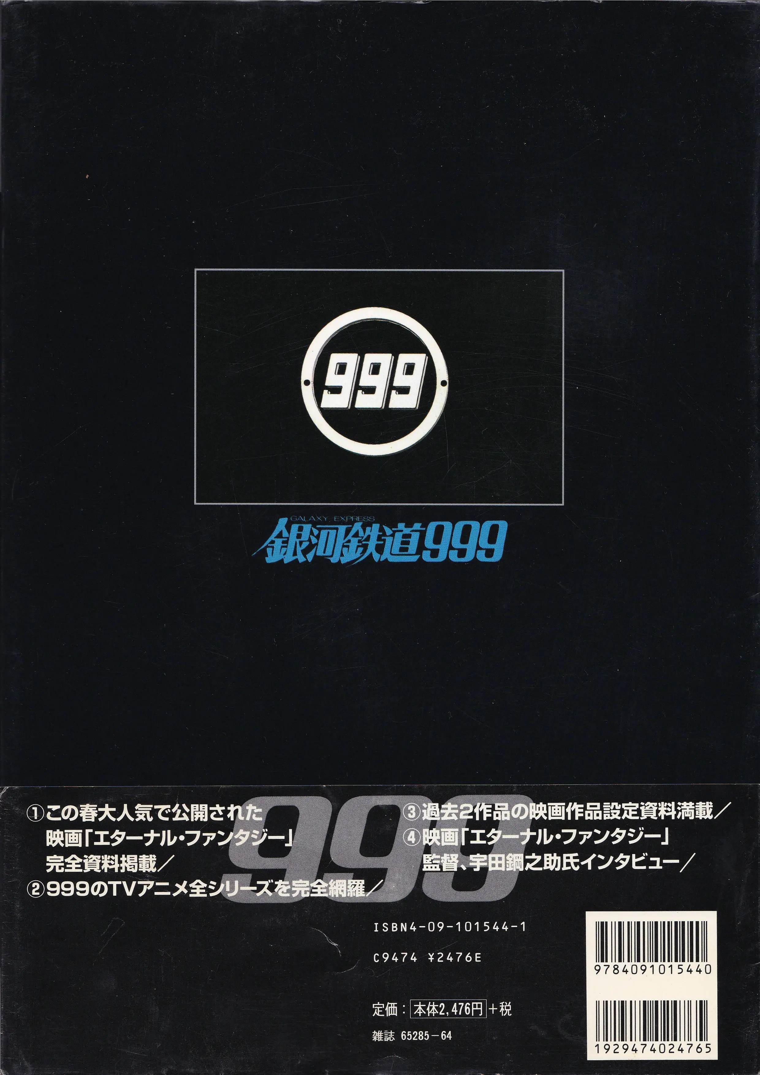 | 収録 | 銀河鉄道999-エターナル・ファンタジー- ・フィルムストーリー ・設定資料 ・インタビュー 加々美高浩 宇田鋼之介 ・スタッフリスト カラーチャート TV 銀河鉄道999 放映リスト&スタッフリスト 映画 銀河鉄道999 ・さよなら銀河鉄道999 ・スタッフリスト |