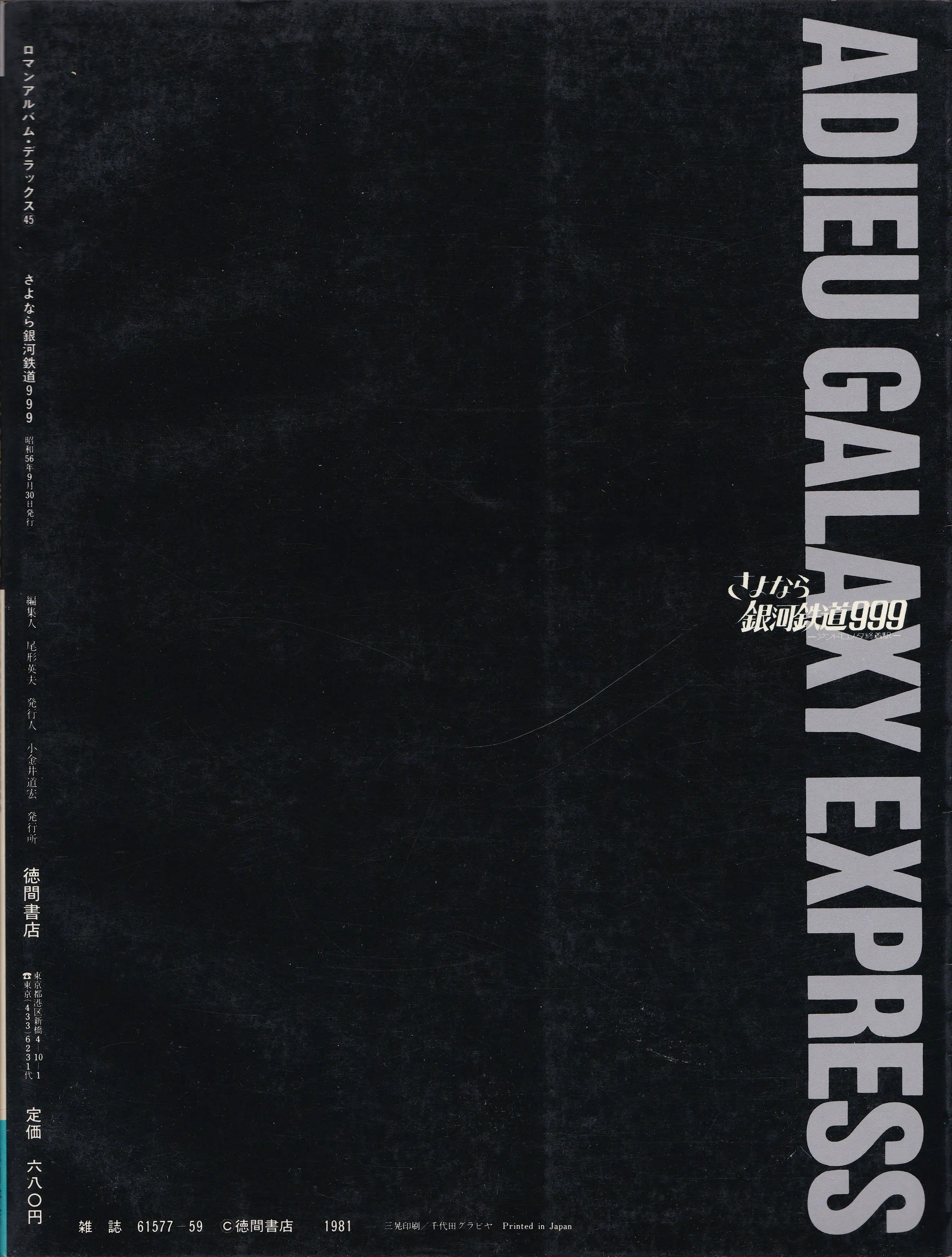 | 奥付 | ロマンアルバム・デラックス㊺さよなら銀河鉄道999 1981(昭和56)年09月30日 |